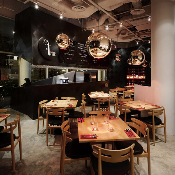 这家酒吧,最突出的就是黑色的吧台及黑色饰面的小包间。这些黑色饰面其实是价格不贵的壁纸。有时设计出特色的风格,不需要花很多钱。
