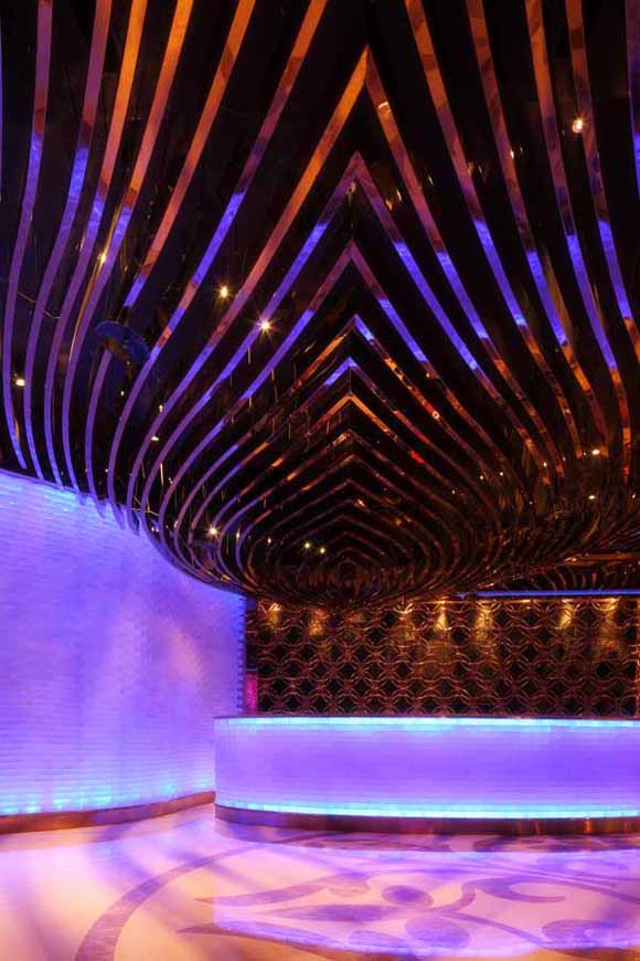 丝丝叠加形成带,块块相连则成面,暧昧激情的灯光如瀑布般倾泻而下,光线在折射中四处映射,包裹着舞动的潮男潮女。在酒吧的迷你酒香中,为觥筹相错的酒吧环境营造或是昏暗幽远,或是激情四射的情感氛围。