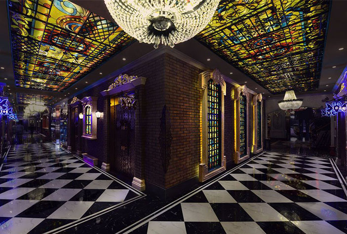利用现代灯光与各种材料的精彩结合,将现代科技技术与原始复古审美渲染出别具一格的装饰效果。为多人聚会提供理想场所。