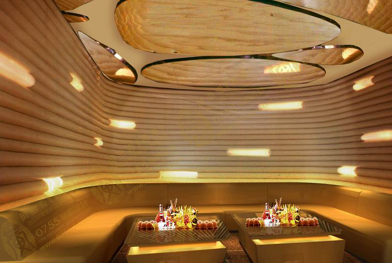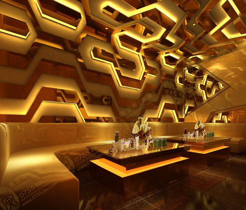 堂立体且错落不致的装饰面,延伸到天花,以绝对的颠覆手法表现除了听觉以外的感官享受,营造出一种激情、欢乐、自由的氛围