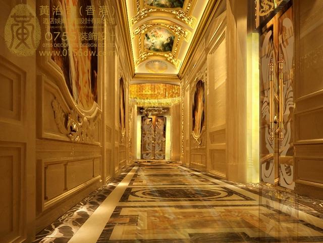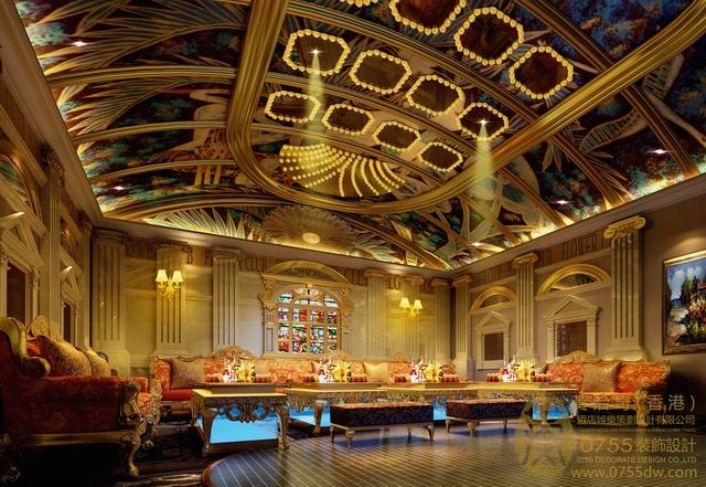 的娱乐氛围。大量的采用了文艺复兴时期的油画,整个空间金碧辉煌,仿佛走进了18
